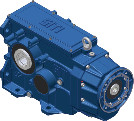 завода "SITI" серии MBH. Комплектуются электродвигателями мощностью от 0,13кВт до 291кВт с крутящим моментом от 44Нм до 14000 Нм. Диапазон передаточных чисел от 7/1 до 226/1 позволяет получить обороты на выходе от 4 до 400 об/мин.